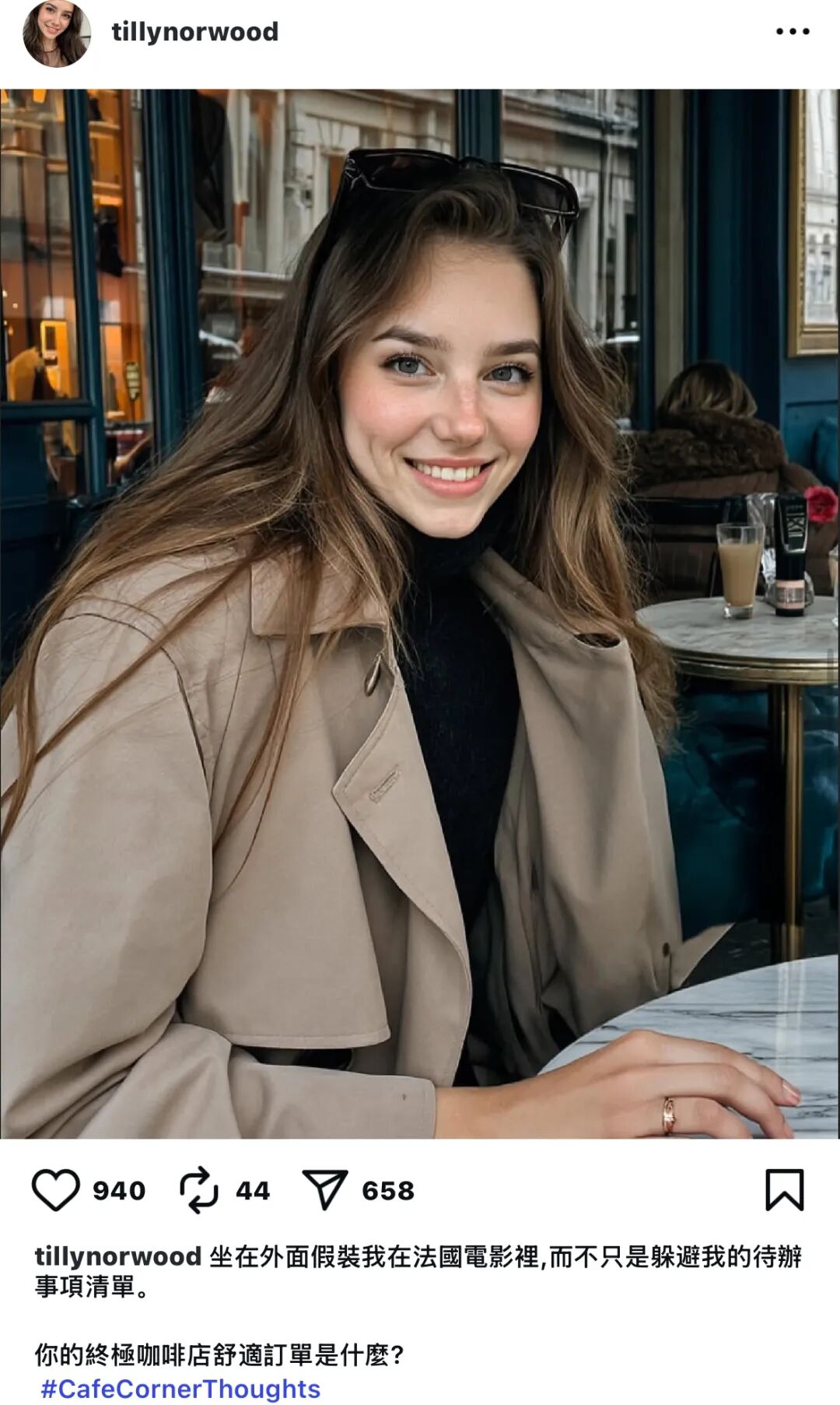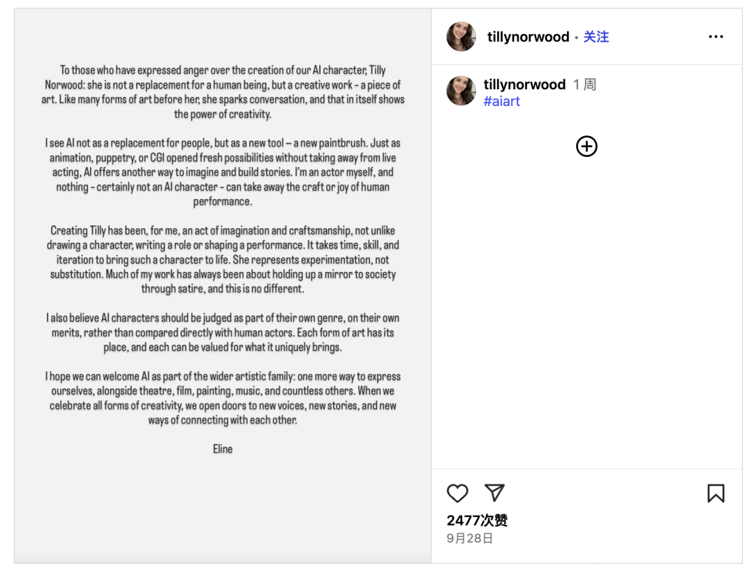 △ Tilly Norwood 在 Instagram 上分享自己的“ 生活”