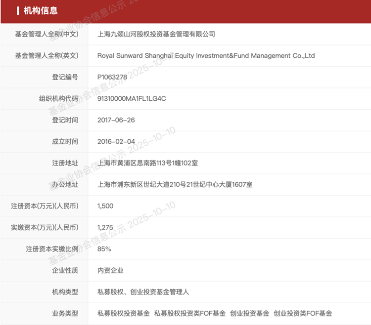 另外,今年 9 月刚刚成立的安徽金灵九颂创业投资合伙企业 (有限合伙),出资额 3 亿元,也是九颂山河基金旗下规模较大的产品之一,由蚌埠恒运投资管理有限公司、常州金灵创业投资合伙企业 (有限合伙)、上海九颂山河股权投资基金管理有限公司共同出资设立,并由九颂山河基金担任执行事务合伙人。