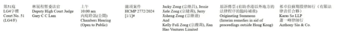 宗继昌、宗婕莉、宗继盛在香港高等法院提起诉讼,要求阻止宗馥莉处置汇丰银行账户内的 18 亿美元资产,并追讨其父宗庆后生前承诺的 21 亿美元 (约 150 亿人民币) 信托权益。