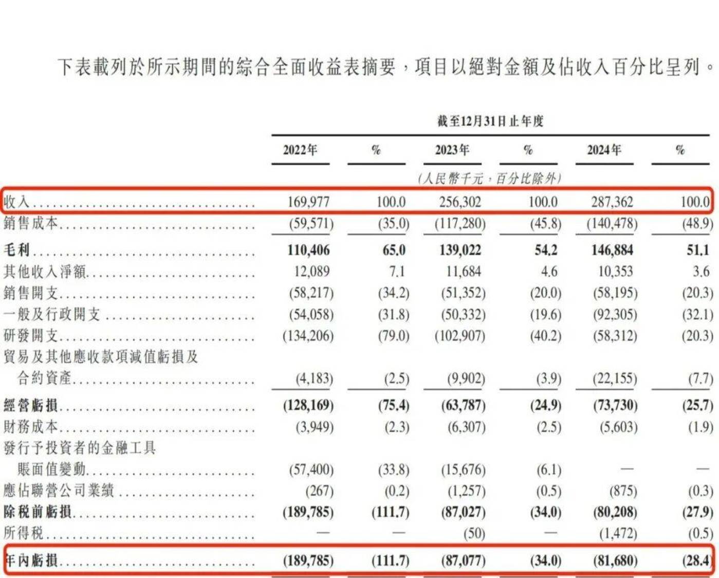 2021 年至 2024 年,五一视界的收入分别为 1.26 亿元、1.70 亿元、2.56 亿元和 2.87 亿元;年内亏损额分别为 1.46 亿元、1.90 亿元、8707.7 万元和 8168 万元,四年累计亏损 5.05 亿元。