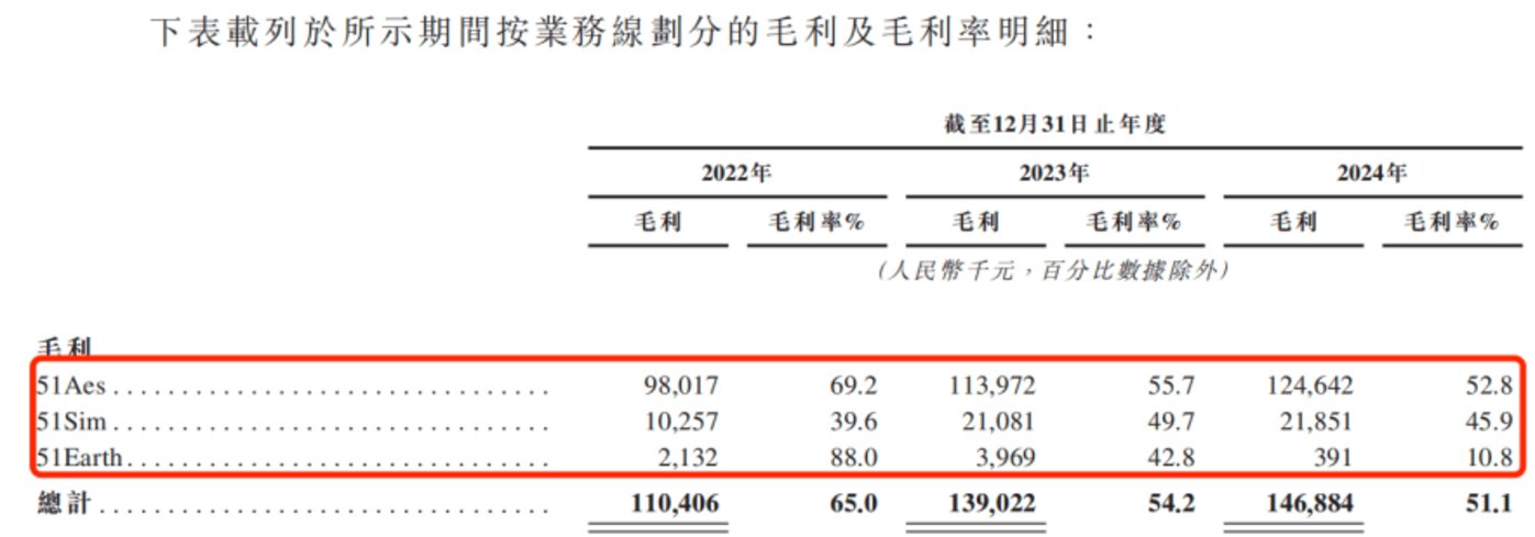 与此同时,51Earth 的毛利率也从 2022 年的 88% 降至 2024 年的 10.8%。除此之外,仅 51Sim 业务的毛利率有所上涨,从 2022 年的 39.6% 增长至 2024 年的 45.9%。
