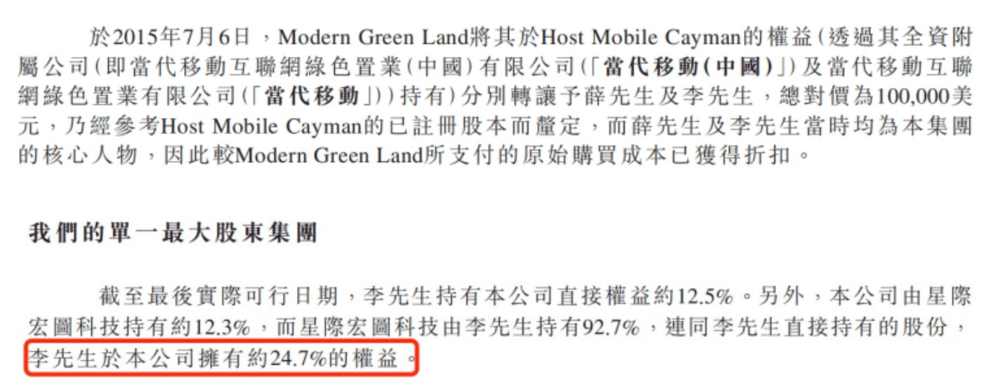 2015 年 4 月,当家移动开始从当代置业拆分出来。当代置业将其持有的 Host Mobile Cayman 全部权益,以 100 万元 (约 13.6 万美元) 的对价,转让给 Modern Green Land,重组完成后,当代置业完全不持有当家移动的任何权益。