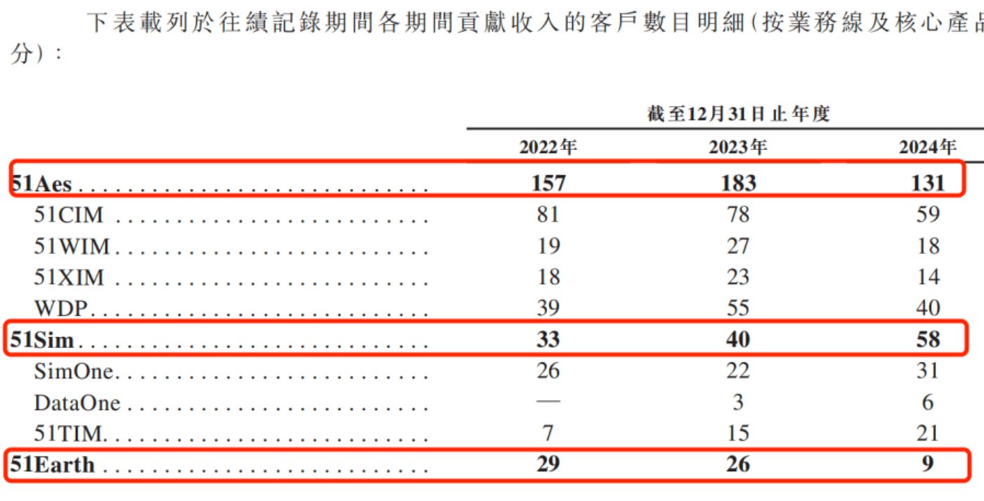 然而,五一视界的客户却没能保持增长态势。招股书显示,报告期内,51Aes 客户数量从 2022 年的 157 个降至 2024 年的 131 个;51Earth 的客户也从 29 个降至 9 个。
