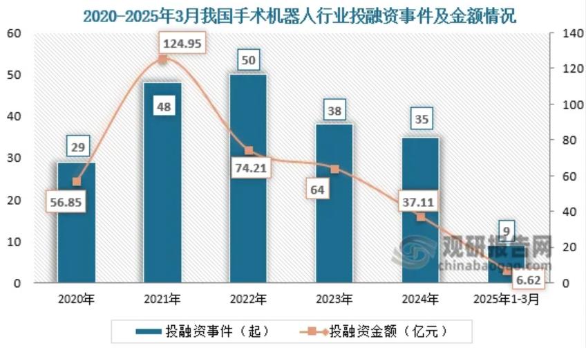 2024 年,中国手术机器人行业仅完成 9 笔融资,这与 2020-2022 年年均近 30 笔的水平相比大幅缩水。