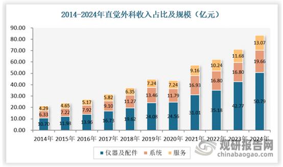根据中商产业研究院的报告,2024 年中国手术机器人市场规模达到约 95.9 亿元,近五年年均复合增长率达 34.5%。预计 2025 年中国手术机器人市场规模将达到 110.3 亿元。