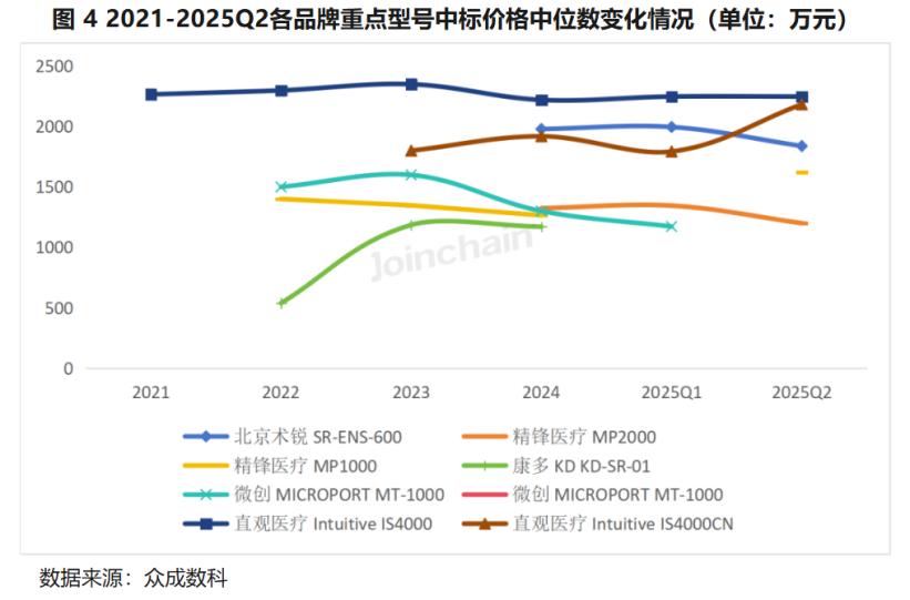 以精锋 MP2000 为例,通过自研核心部件其 1200 万-1898 万元的中标价较达芬奇国产版本低 30%-40%。