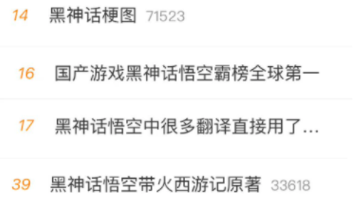 《黑神话:悟空》 热度爆棚,在国内社交平台,相关话题 「国产游戏黑神话悟空霸榜全球第一」、「外国网友开始打听一只中国猴子」、「黑神话悟空中很多翻译直接用了拼音」、「 黑神话悟空结局」……不断涌上热搜,霸榜热搜榜。
