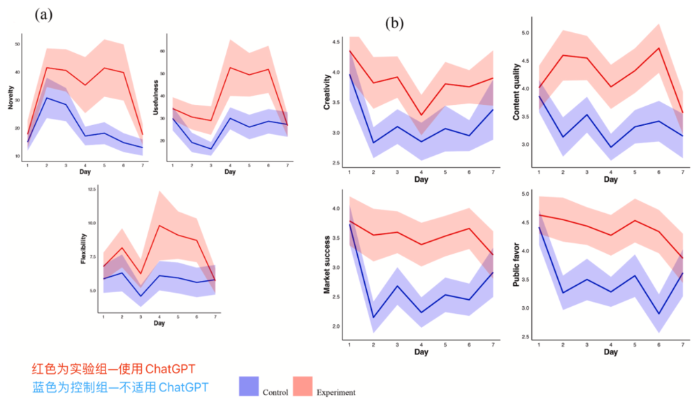 实验设计分为三个关键阶段:首先,所有参与者在第一天均不使用 AI,完成创造力基线测试;随后,在第二至第六天,「AI 实验组」 在 AI 辅助下完成每日的创造力任务,「纯脑力对照组」 则在没有辅助的条件下完成任务;最后,也是最关键的,在第七天、第三十天和第六十天,所有参与者都必须在无 AI 辅助的情况下,完成最终的追踪测试。