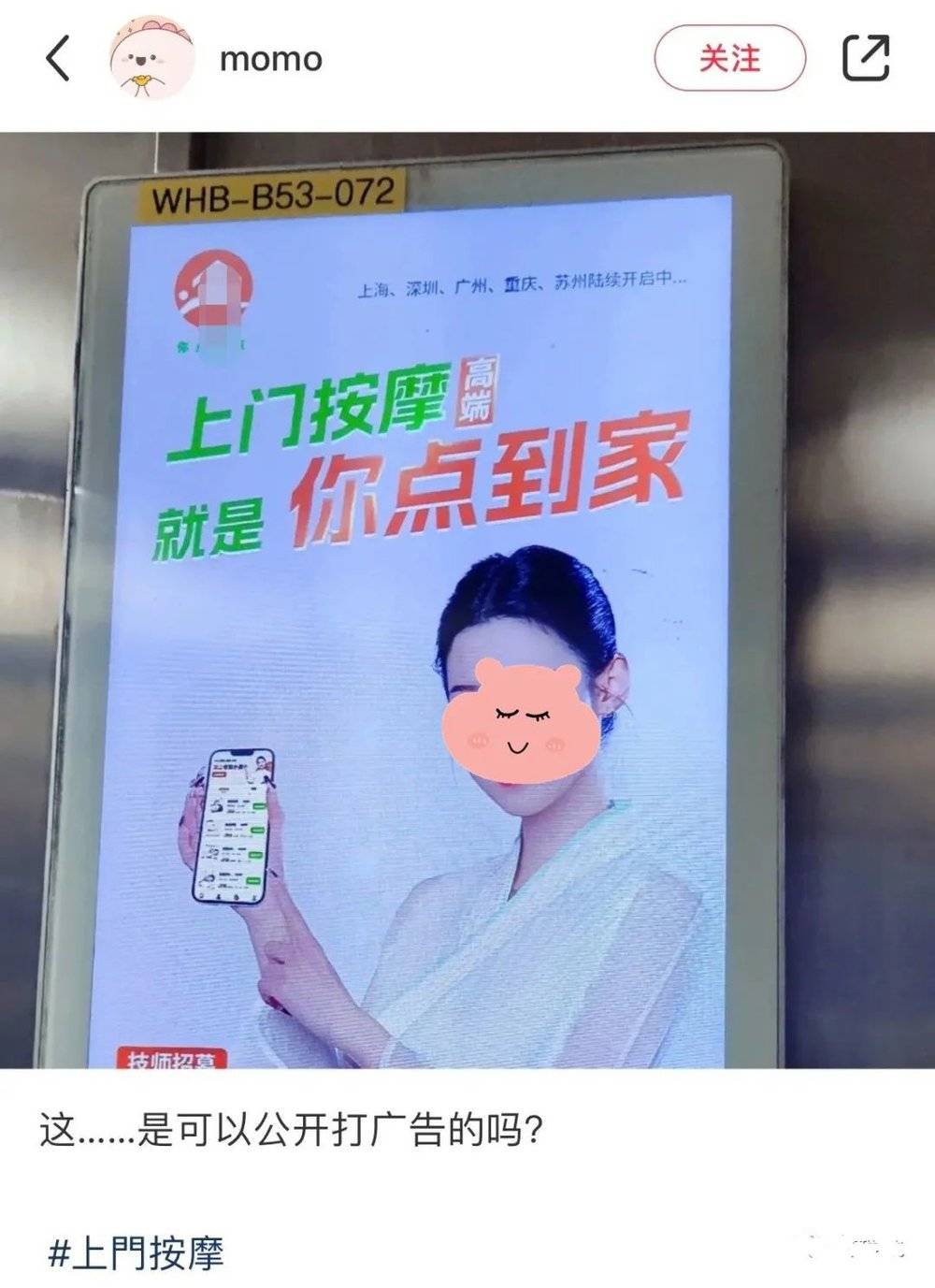 不管你怎么看,不管你看不看,跌破许多人眼镜和观感的是,2024 年,在深圳大大小小的电梯里,上门按摩的广告被精准投放到每一个可能下单的深圳人身边。