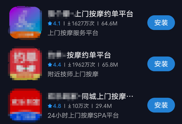 查看多款上门按摩 APP 发现,首页多明显标有 「绿色服务」「安全正规」「专业推拿」 等字样,但评论里却是清一色的 「肤白貌美」「颜值爆表」「年轻漂亮」「三七身材」「梦中情人」「一见就动心」 等这类 「擦边」 用词。