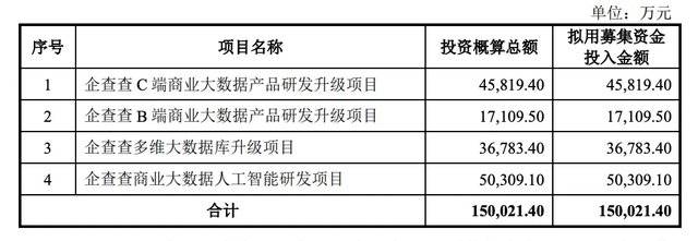 从招股书披露的募集资金用途看,15 亿元中有约 10 亿元 (66.5%) 将投入产品升级——包括 C 端 4.58 亿元、B 端 1.71 亿元、多维大数据库 3.68 亿元,还有 5 亿用于 AI 研发。可见企查查确实意识到了技术投入的重要性。