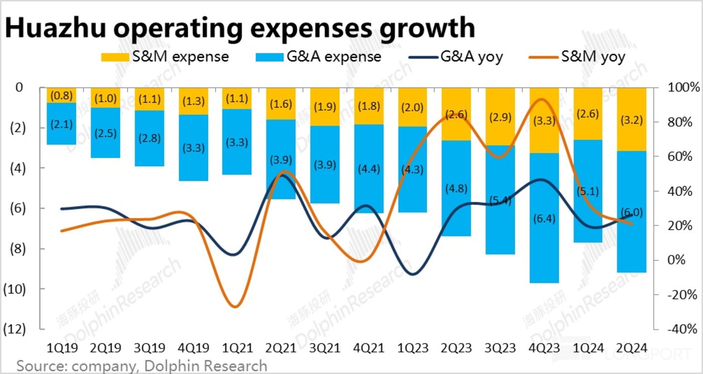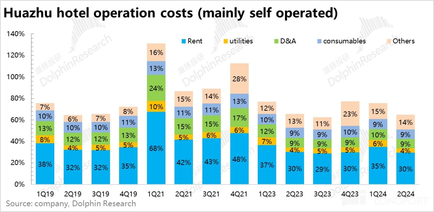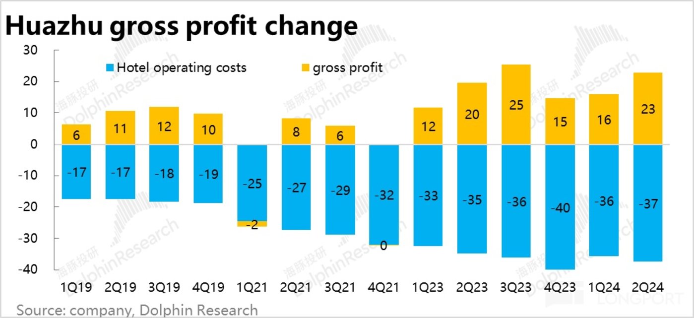 具体来看,各项成本支出占华住自营业务的比重基本都同比持平,换言之,都是同比略增的自营收入和成本大体相互对冲,增量的加盟业务收入则大体转化为了增量的毛利。
