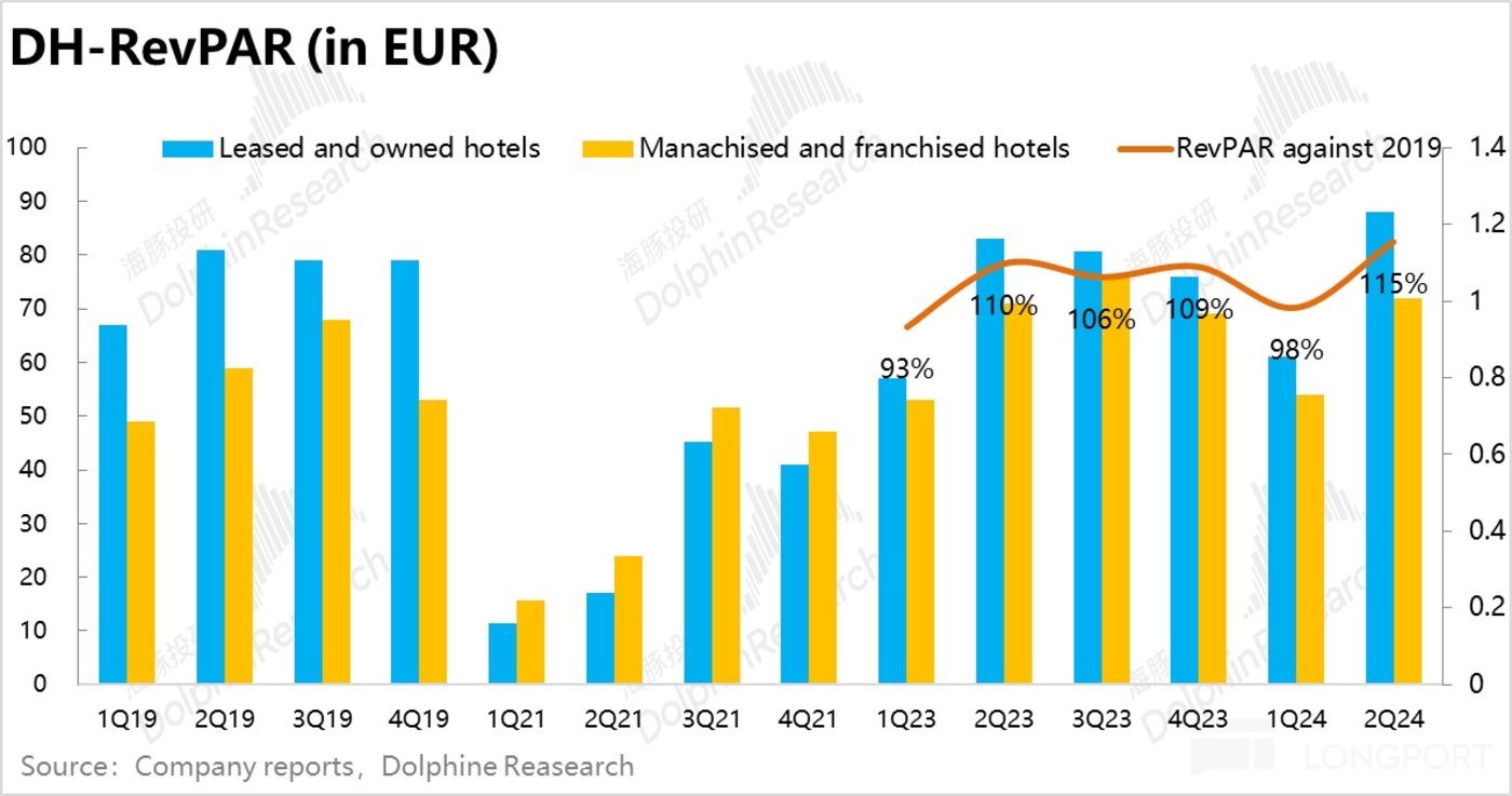相比之下,欧洲的酒旅需求因为欧洲杯和三季度内奥运会的带动效应下,出现了一波明显的拉升。平均单间收入 (RevPAR) 达到了 19 年同期水平的 115%,创下疫情以来的历史最高。不过毕竟规模有限,对集团整体的影响不大。
