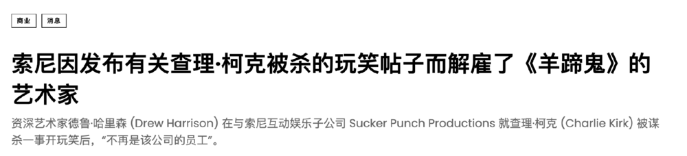 在发售之初,预告片的留言板下充满着对游戏行业 DEI 的批评;SP 组的资深美术 Drew Harrison 也因为拿查理·柯克遇刺开玩笑:「我希望枪手的名字叫马里奥,这样路易吉就知道他兄弟在支持他。」 而引发舆论关注。