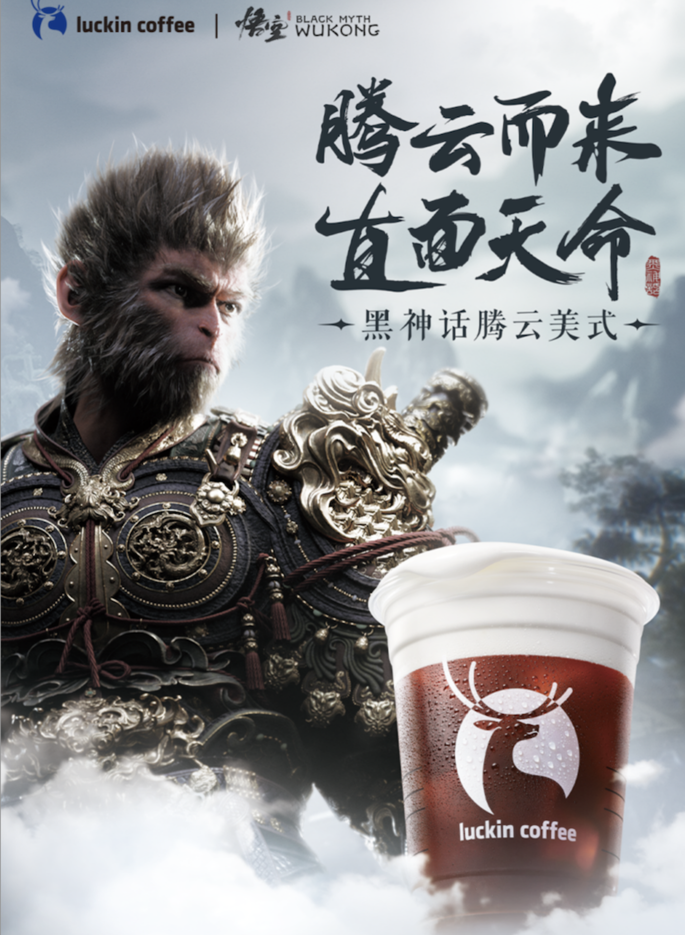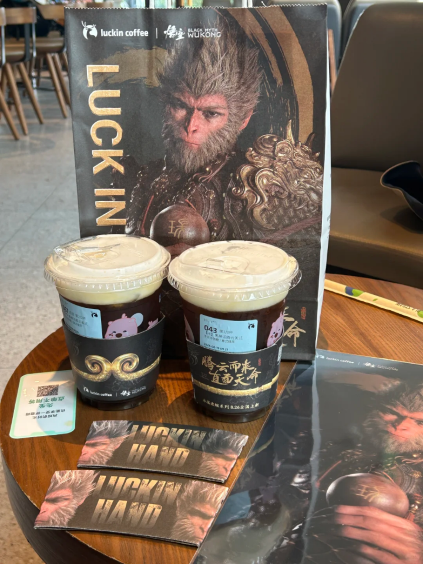 尤为出圈的是瑞幸与 《黑神话:悟空》 的联名,一个 「猴子」 拉动的销量 「比 10 个父亲节都靠谱」、「男性购买力今早颠覆团队认知了」,这是瑞幸瑞幸 CGO 杨飞在朋友圈对瑞幸与 《黑神话:悟空》 跨界联名活动的评价。这次瑞幸为了恭迎 「天命人」,提前一天开售了与 《黑神话:悟空》 的联名新品 「腾云美式」,并限量赠送黑神话·悟空专属皮肤的 3D 海报光栅卡、3 款联名杯套等限定周边,提前圆了 「亿万少男的梦」,周边几乎一上线就被抢爆,一度进入售罄状态。