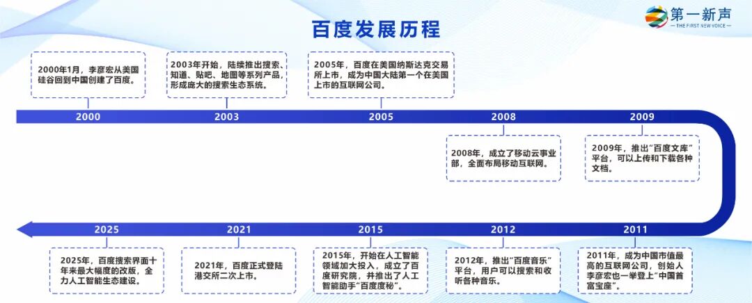 2000 年 1 月 1 日,李彦宏的搜索公司成立,在中国互联网公司热衷于采用 Sohoo、eLong 等中英夹杂的名字时,儒雅的他从宋词“ 众里寻他千百度” 中选取了“ 百度” 二字。