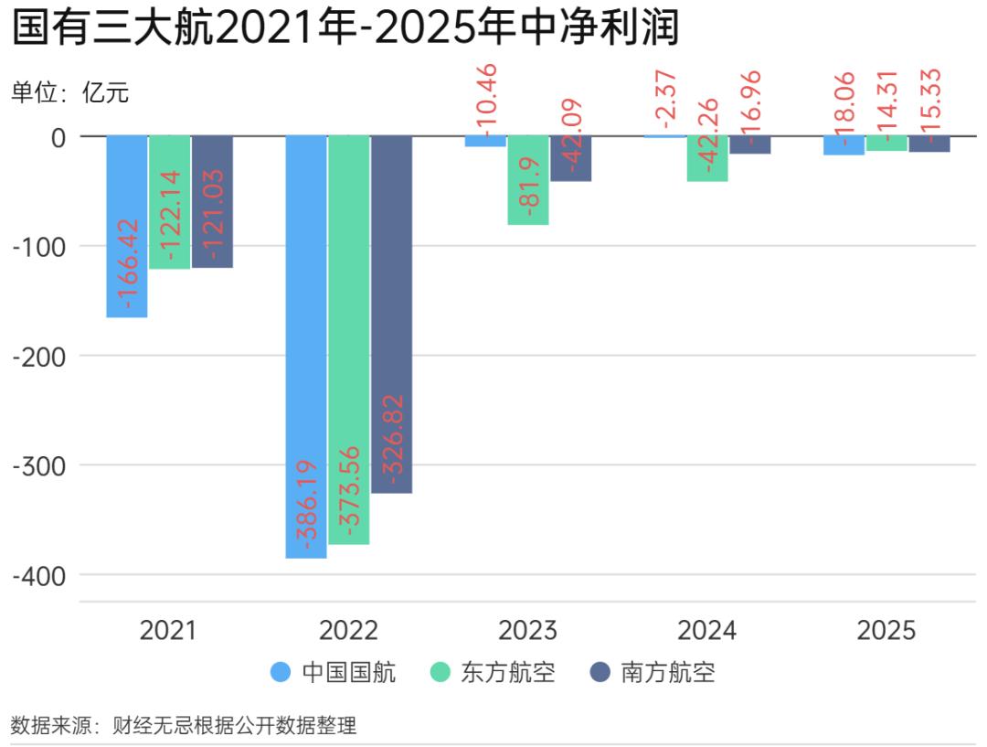 2025 年上半年,国有三大航,中国国航、东方航空、南方航空仍未能扭亏为盈,亏损额分别达到 18.06 亿元、14.41 亿元和 15.33 亿元。三大航已经持续亏损了 5 年。