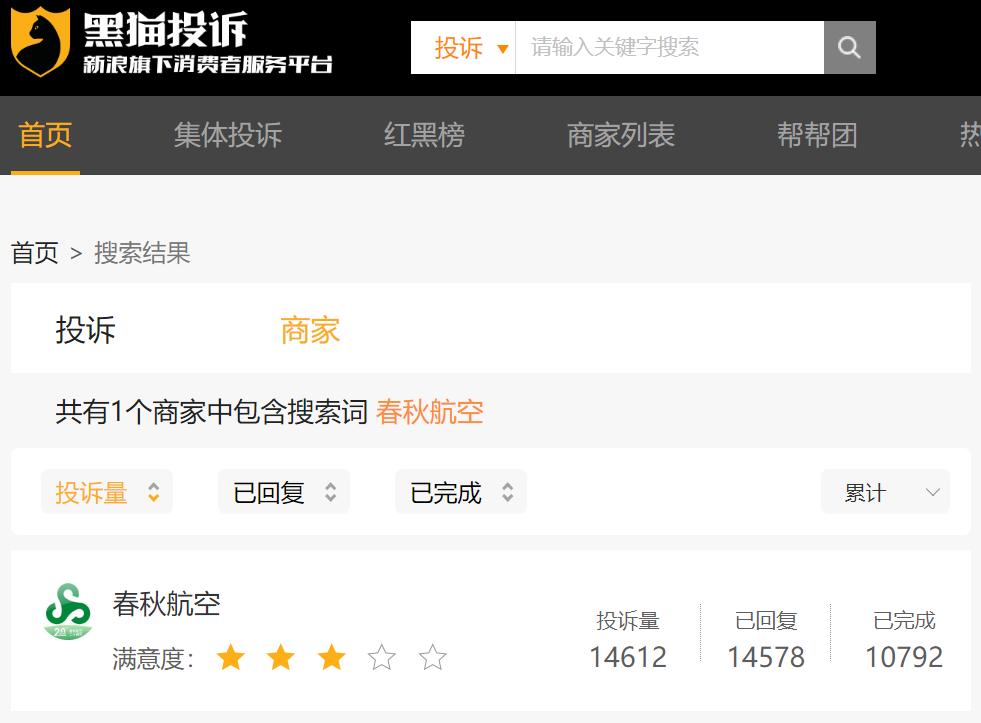 不过,过度压缩成本和增加收费项目,难免影响消费体验,春秋的廉航品牌打响了,口碑却难以跟上。在黑猫投诉平台上,针对春秋航空的投诉量高达 14612 条。