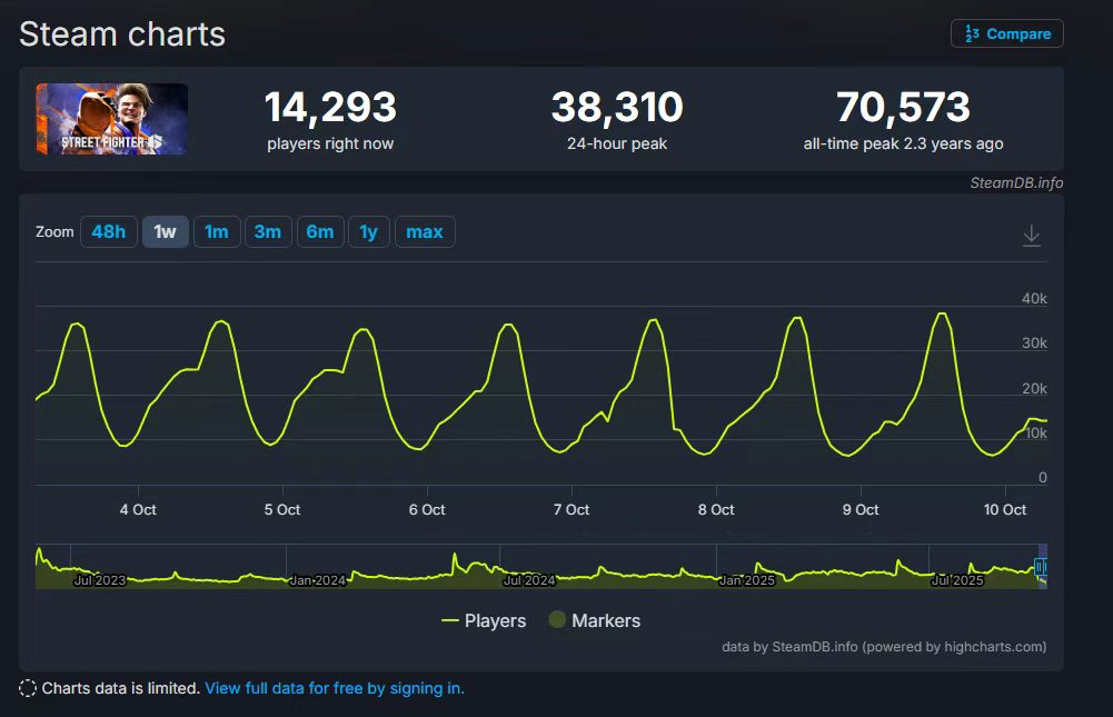 在主流论调里,街机时代叱咤风云的格斗游戏在如今已经是式微、小众的旧时代残党。这种论调也不能说错,即使是新世代最火的格斗游戏 《街霸 6》Steam 平台的日常最高在线也就 4 万左右。