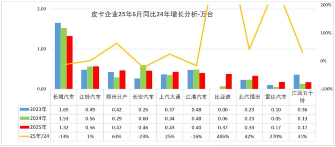 图/2025 年 H1 国内皮卡销量排行 来源/互联网 新能源观截图