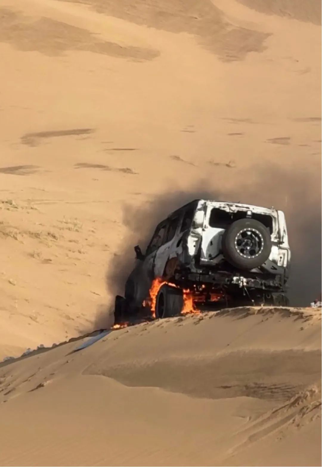 只不过,阿拉善热情还没有感染消费者,一起越野车起火事件却引发了广泛的关注。根据“ 车友公社” 发布的视频,9 月 28 日,一辆越野车在内蒙古阿拉善沙漠被烧的几乎只剩车架子。有网友结合多个视频,根据车架结构与外观特征,推测涉事车辆为长城旗下的坦克 500。
