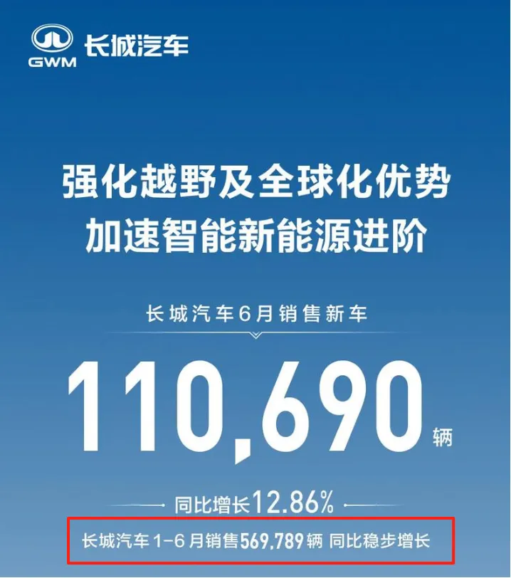 今年 1-6 月,哈弗品牌累计销量 32.37 万辆,同比增长 8.89%;长城皮卡累计销量 9.36 万辆,同比增长 4.01%。乘联会数据显示,长城皮卡在今年 1-6 月的表现,继续坐稳国内皮卡第一位置。