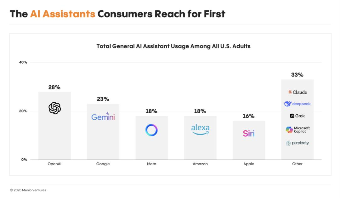 根据调研机构 Menlo 的数据显示,美国有四分之一的用户会选择 ChatGPT 作为首要入口。目前整个市场竞争非常激烈,OpenAI 虽然处于领先地位,但优势并不算大。关于竞争入口的重要性,Menlo 在报告中提到,“ 消费者几乎总是会首先尝试他们的默认工具。”