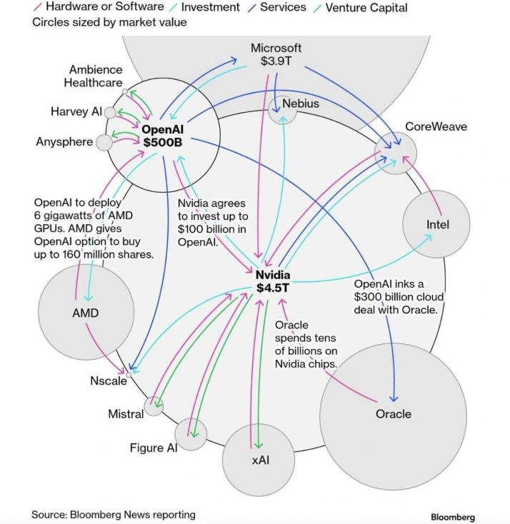 在接连发生的 AI 投资事件中,有人注意到 OpenAI 正在通过一系列芯片、数据中心建设、AI 技术服务的订单,形成了一整套闭环的价值链。参与到 OpenAI 合作的玩家们,正在组织起一个系统性的 AI 建设联盟。