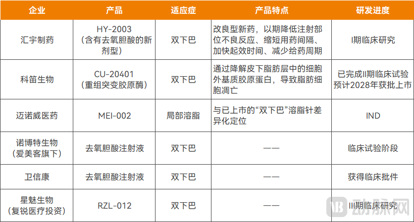 国内在研的溶脂针产品,资料来源:企业公开信息