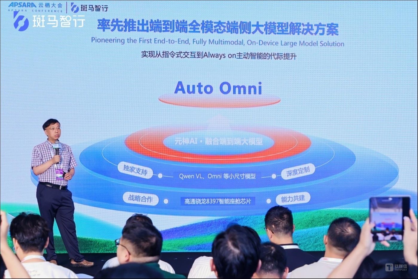 2025 年云栖大会上,斑马智行给出了它的答案。其首席产品官蔡明隆重发布了行业首个全模态端侧大模型解决方案——AutoOmni。这不仅仅是一款新产品,更代表着一种对智能座舱未来走向的深刻判断:是时候告别 「你好,斑马」 的时代了。
