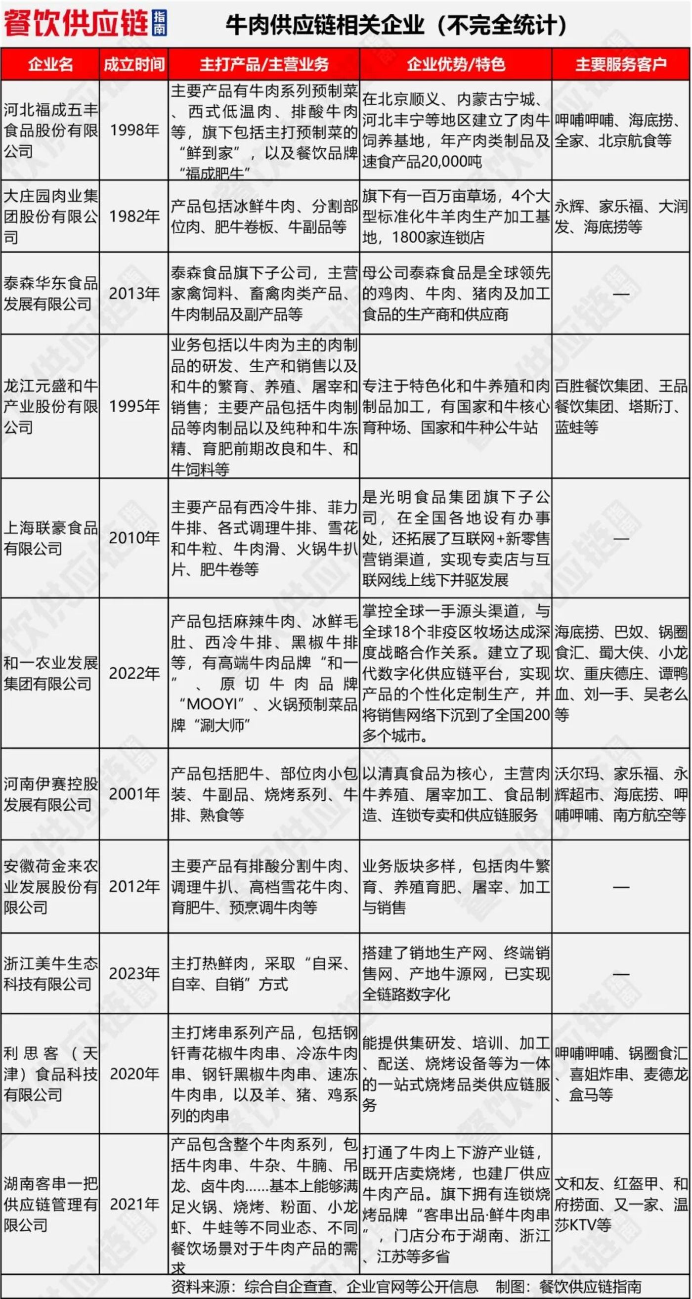 特别是在餐饮端,牛肉的应用场景不断扩大,一大批与牛肉相关的餐饮品类人气走高,还分化出了牛肋条自助、鲜切牛肉火锅、生烫牛肉米线等多个细分赛道。与此同时,不少下游端企业也在加速自建供应链、中央工厂,甚至向上游养殖端渗透。
