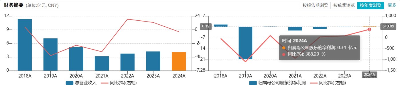 亚太药业已连亏 6 年,营收基本维持在 4 亿元左右,图源:Wind