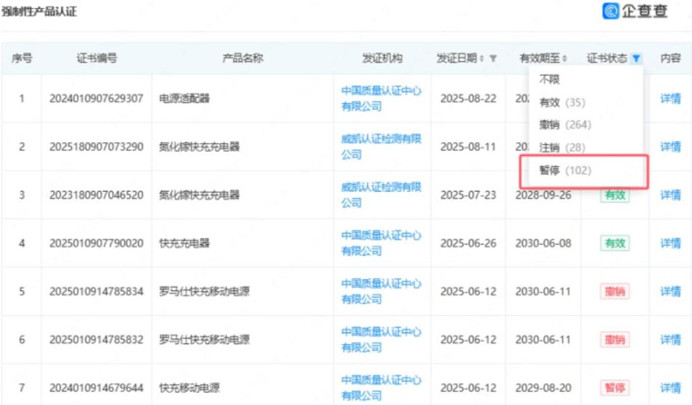 罗马仕多个快充移动电源 3C 证书状态变更为 「撤销」