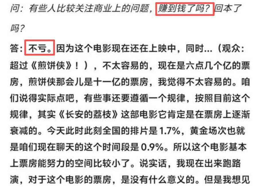 不管是因为题材、时间,还是因为剧版 《长安的荔枝》 没能让观众喜欢,都无法否认,有相当一批观众对这部电影不感兴趣。相比起 《长安的荔枝》 的成本而言,这部电影在商业上只能如大鹏本人所说的那样 「不亏」。