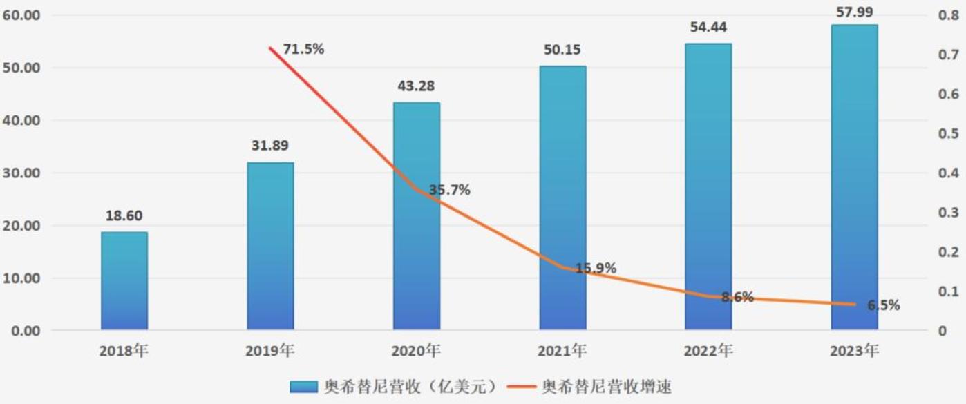 图:奥希替尼营收及增速,来源:锦缎研究院