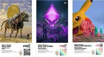 NFT(非同质化代币) 指的是区块链上的数字资产,它为图片、视频等数字文件提供独一无二的所有权凭证。根据官方解释:「由于其不可复制和篡改的特性,数字艺术品首次能像实体作品一样被真实地收藏和交易,解决了真伪与归属难题,创造了一个全新的数字艺术市场。」 总结来说,这是虚拟世界的艺术,所以没有实物,相当于艺术市场的区块链。上图:The Everydays " series,在 2021 年卖出 25 万美元