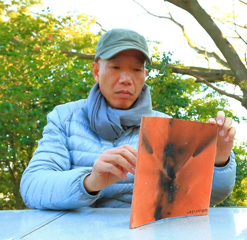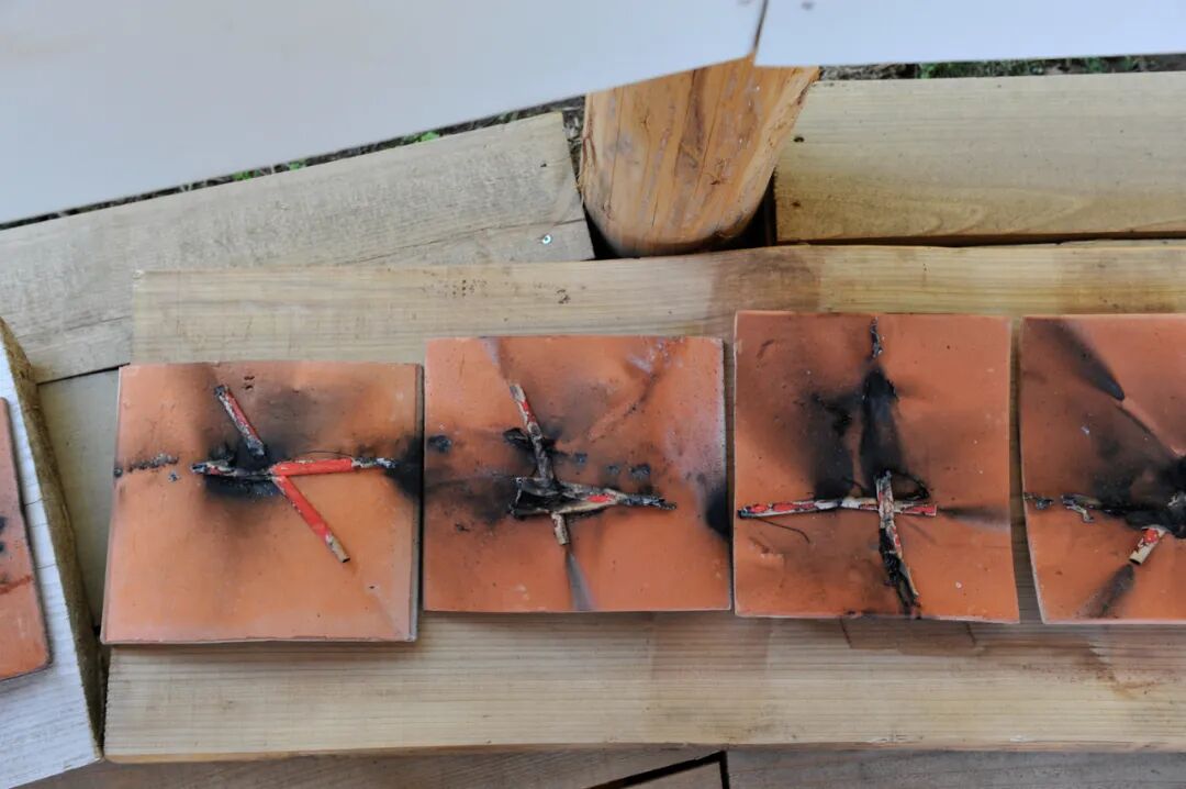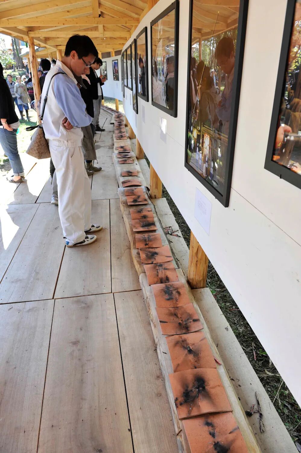作品点燃后,陶瓷瓦片作为作品的一部分,供到访者参观,如上图。以上图片来源 @caiguoqiang.com