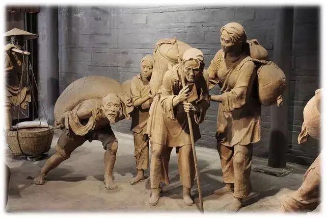 为了赶国庆,他们四个半月就干完活。群雕有 114 人,道具 108 件,分交租、验租、过斗、算账、逼租、反抗、上山打游击 7 部分,26 个情节,全长近 100 米。传统泥塑手法加上黑玻璃球做眼珠,箩筐、鸡公车、谷风机等直接当成现成品,没错,要的就是超级写实主义。