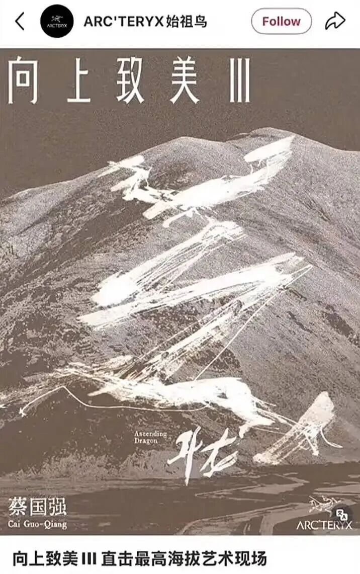 蔡国强提供的是独一无二的艺术声望与“ 征服自然” 的宏大叙事;始祖鸟提供的则是雄厚的资本,以及一个与之完美契合的、面向高端消费群体的品牌平台。