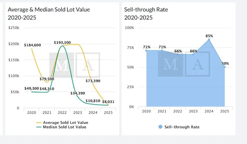 2025 年的拍卖成功率从去年的百分之 85 跌到百分之 50