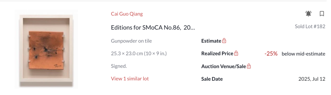 在 2025 年,蔡国强“ 流拍” 和“ 低于预估价格” 的作品,加起来已经超过一半以上了。