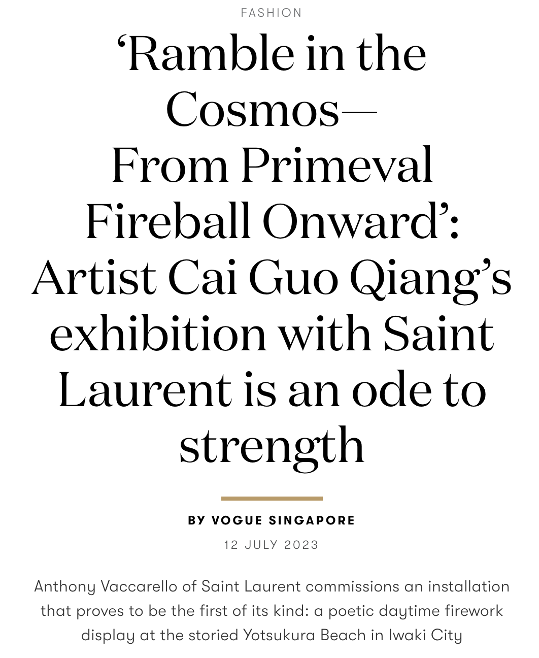 圣罗兰 (Saint Laurent) 委托创作的一件堪称首创的装置作品—— 在日本磐城的四仓海滩 (Yotsukura Beach) 上演的白日烟花秀。