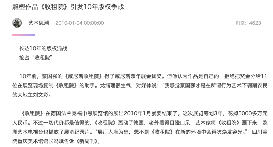 “ 雕塑作品 《收租院》 引发 10 年版权争战”——《艺术思潮》