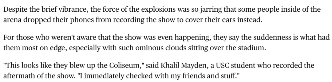观众反映说,比他们想象的声音要大,有的吓得手机掉了,捂住耳朵。