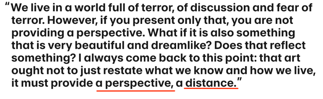 这句话能帮助我们理解,他是如何在西方艺术主导的话语体系中走到了今天;又能警示他自身—— 人会在功成名就的时候,变成自己曾经不愿意成为的样子:恐惧失败,恐惧消亡,恐惧寂寂无名。