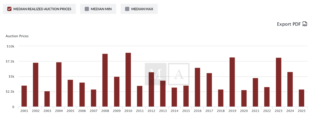 然而,若我们转换时视角,从雪山的烟雾,移向拍卖市场的 K 线图,或许会发现,这场艺术豪赌的引信,早在几年前就已悄然点燃。