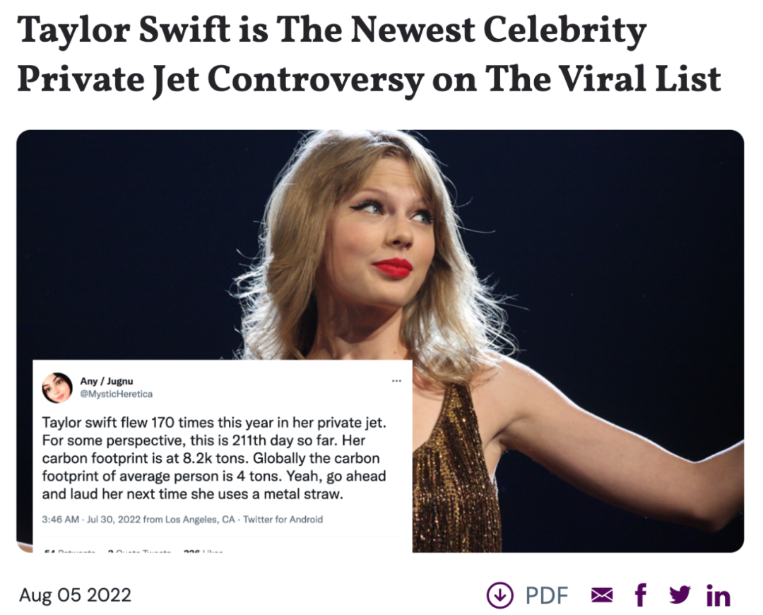 不得不说,对于环保这个社会议程,精英阶层作为日常用品的 「私人飞机」,揭露了其虚伪的本质:精英可以言语上环保,行动上烧油,来获得大众的赞誉。正如图中的评论者所说:「她下次用金属吸管的时候还称赞她」 吗?