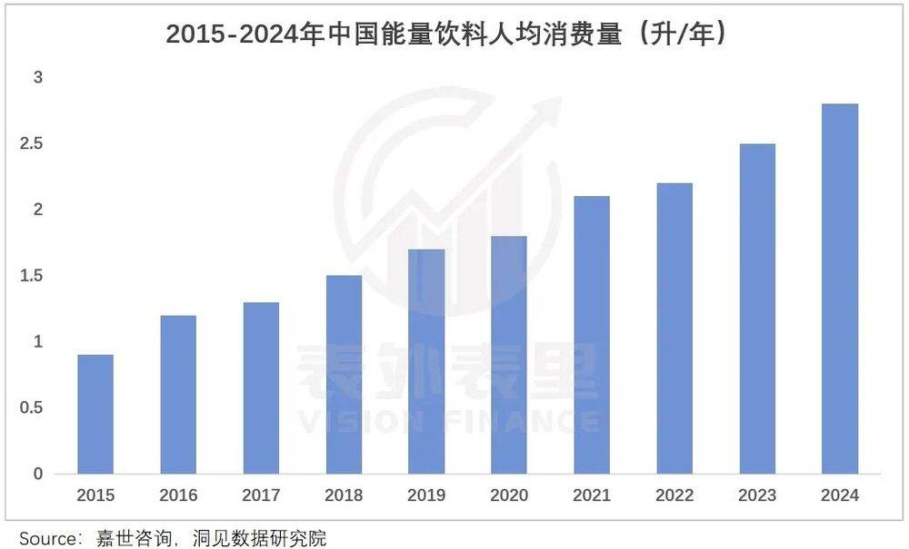 庞大的 「清醒需求」 下,作为 「牛马兴奋剂」 的能量饮料,销量、人均消费量节节攀升:2015 年,国内每人每年平均约喝 「4 瓶红牛」;去年,这一数字逼近 「10 瓶」。