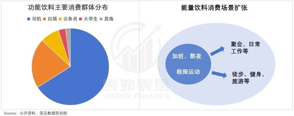 数据显示,功能饮料核心用户中,白领、公务员、大学生占据了不小的比例。能量饮料逐渐从卡车司机、快递小哥 「专属补给」,升级为 「全民日常抗疲劳解决方案」。