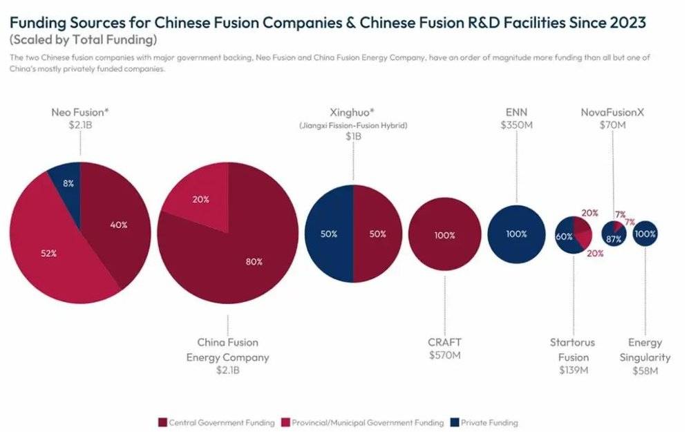 更何况,中国的民间资本,在这场终极能源的竞赛中,也发挥着重要的角色。诺瓦聚变 (NovaFusion)、能量奇点 (Energy Singularity)、星环聚能 (StarorusFusion)以及新奥能源 (ENN),还有没有出现在下图的瀚海聚能 (HHMAX)都是民营企业;在南昌裂变聚变反应堆 「星火 (XingHuo)」 相关企业江西聚变,以及合肥 BEST 项目主体相关企业聚变新能 (NeoFusion)里,民营资本也发挥着重要作用。